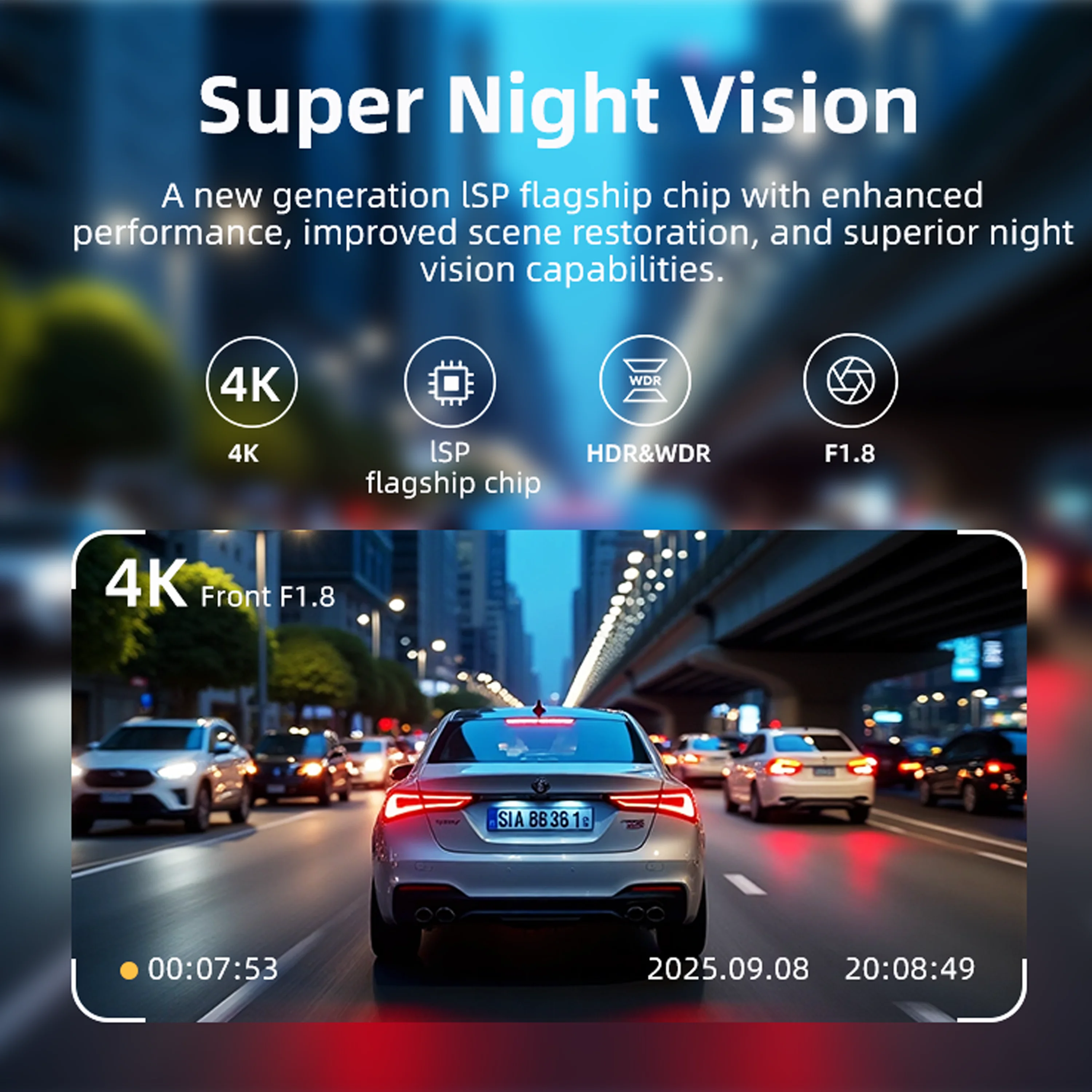 ກ້ອງຕິດໜ້າລົດວິດີໂອຄຸນນະພາບສູງ 4k ມີເຊື່ອມຕໍ່ wifi ສອງເລນ