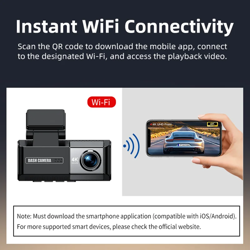 Dual Lens wifi dash cam for cars 4k