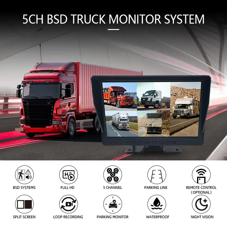 10.1" Voice Control Screen 5 Split Monitoring Camera System Active Blind Spot Detection BSD 5 Channel Truck Camera System |