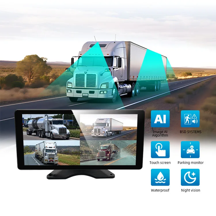 10.36 Inch Monitor Touch Screen Dash Cam Front Rear 1080P 5CH AHD Camera Sound Light Alarm BSD AI Truck Camera System |